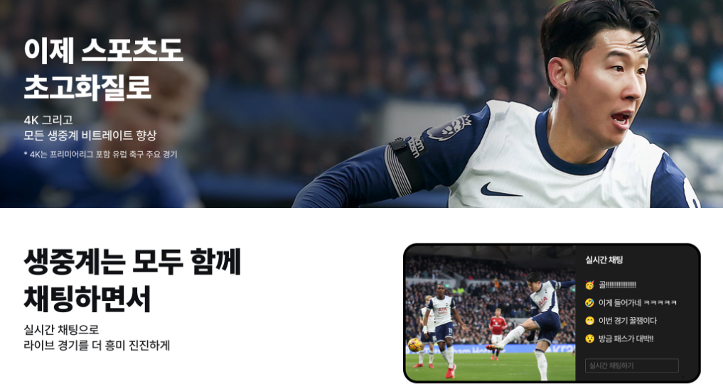- 4K 프리미엄 화질과 실시간 무광고 중계
