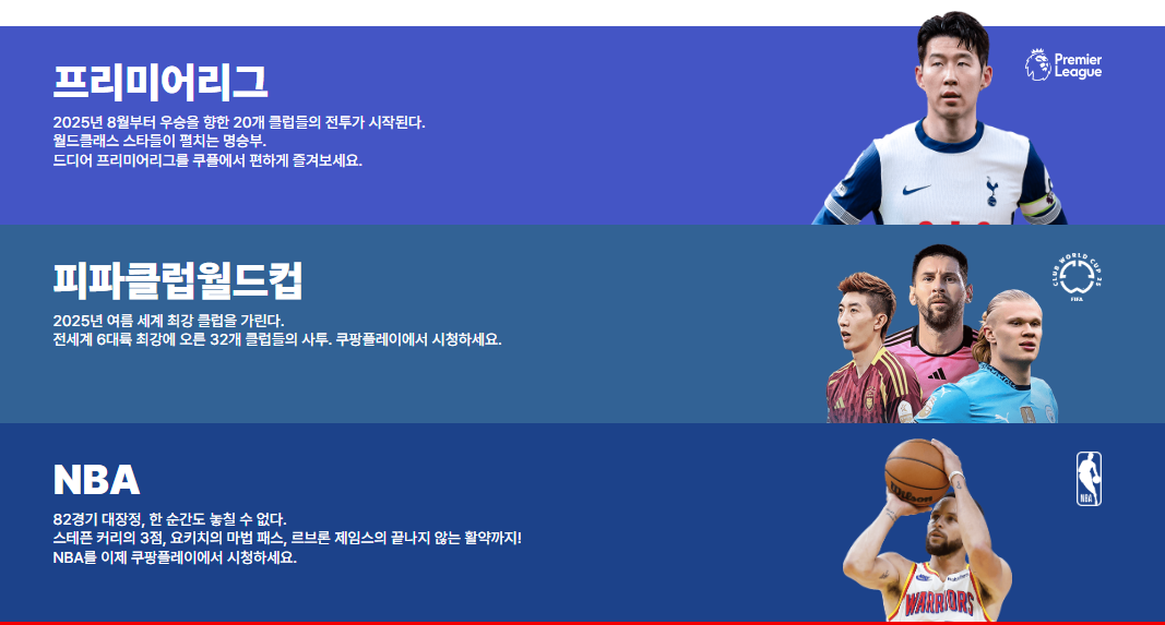 - 기타 특집 중계: 클럽월드컵, PL 써머 시리즈, 쿠팡플레이 시리즈 이벤트 등